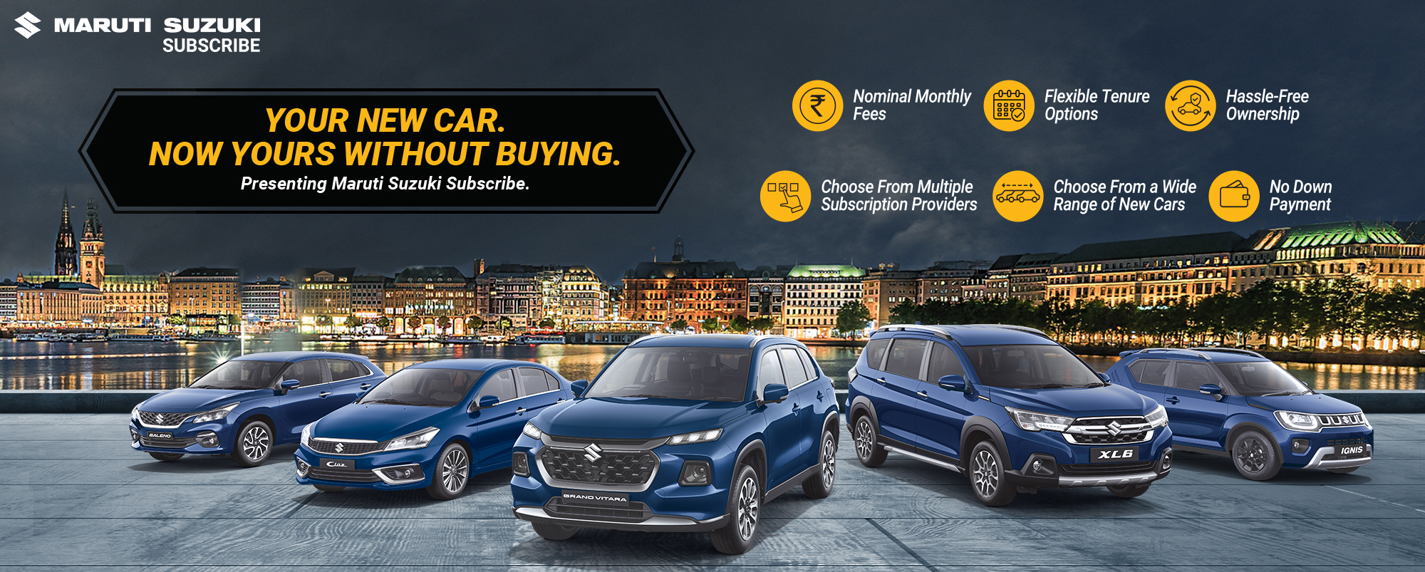 Maruti Suzuki Subscribe enables all customers to enjoy driving their preferred Maruti Suzuki cars without having to deal with all the financial responsibilities that come with owning a car.All you need to do is opt for a monthly subscription plan at a fixed monthly fee, which includes the routine maintenance and insurance costs, and choose a flexible tenure. At TM Motors in, Circular Road, Bharatpur, all Hatchback, Sedan, SUV, the MUV models line-up includes Baleno, Invicto, EVitara, Jimny, Ciaz, Ignis, Fronx, Grand Vitara, XL6. Here, you will enjoy Maruti Suzuki Subscribe benefits such as: